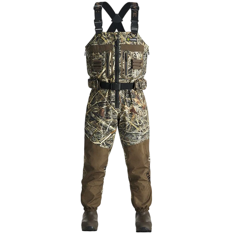 DeepWade Waterfowl Waders | Breathable Bootfoot Front Zip Chest Waders for Duck Hunting | Waterproof Camo Hunting Bib Overalls for Men
