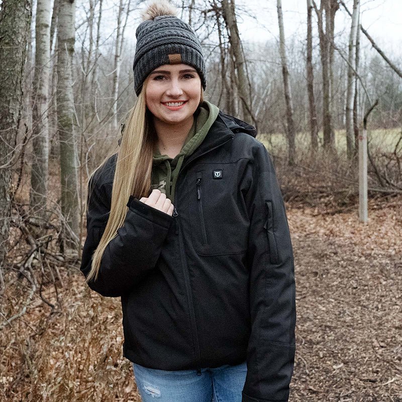 Heated Jacket for Women | Heated Coat with Detachable Hood & 10000mAh Battery Pack | Camo or Black Heated Outdoor Apparel for Hunting