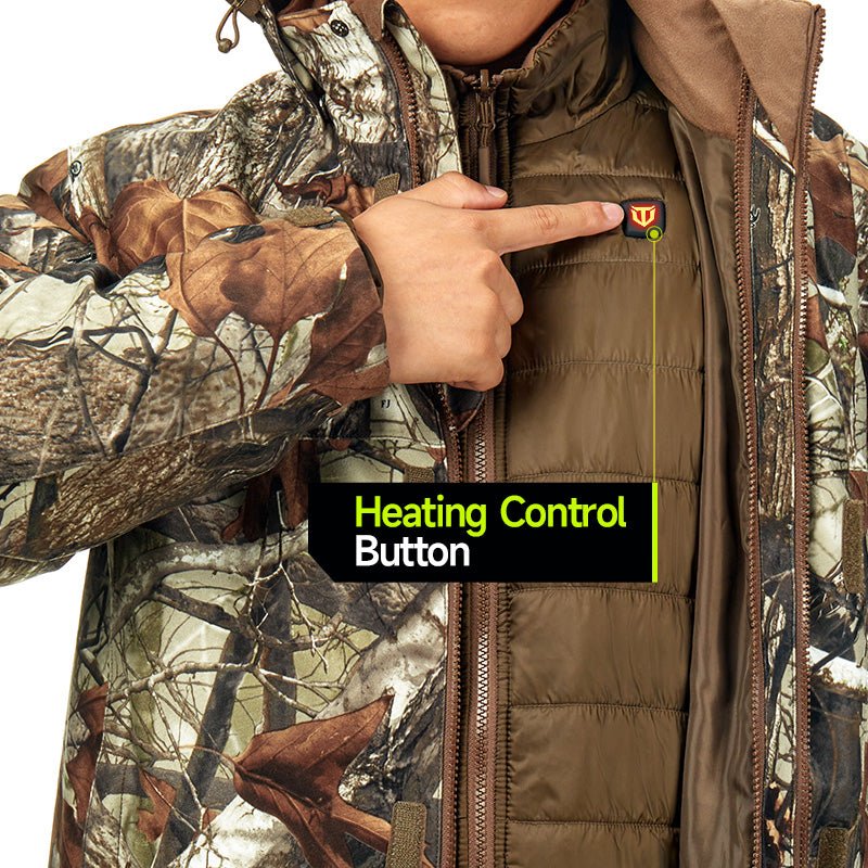 3-in-1 Heated Jacket Men | Heated Waterproof Coat with Hooded Soft Shell & 10000mAh Battery | Camo & Black Heated Hunting Jacket